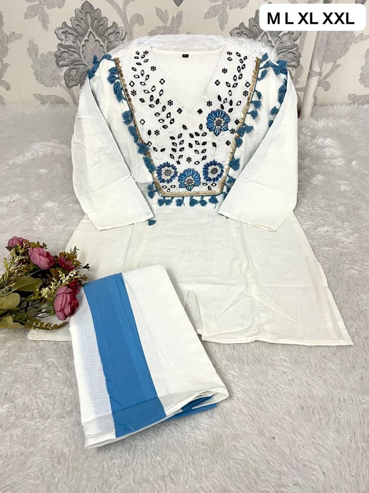 Kurti traditionnel en coton épais pour femme avec broderie à la main et miroirs, idéal pour les festivals, fabriqué en Inde, en stock