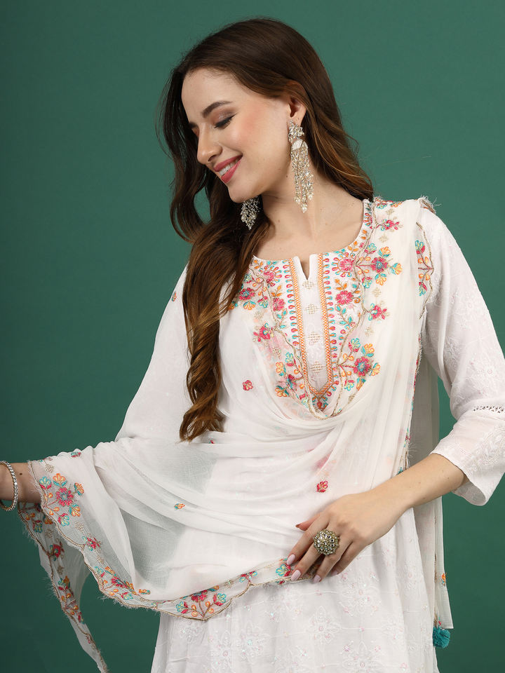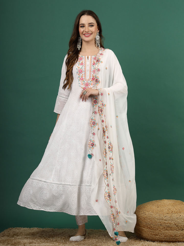 Vêtements de créateur indiens traditionnels brodés Anarkali Kurti pantalon assorti avec des ensembles Dupatta en organza aux prix de gros