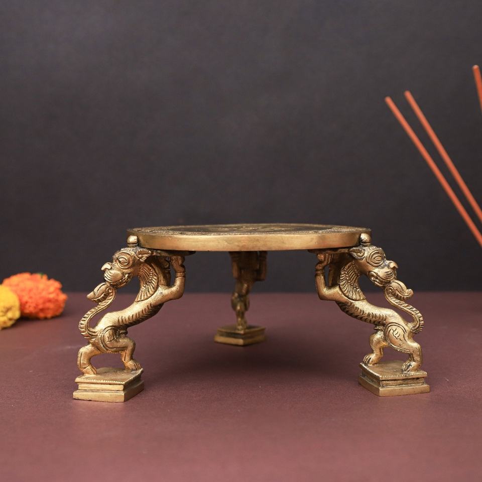 Chowki rituel indien traditionnel fabriqué à la main avec des jambes Yali Objet décoratif Showpiece pour offrir des cadeaux