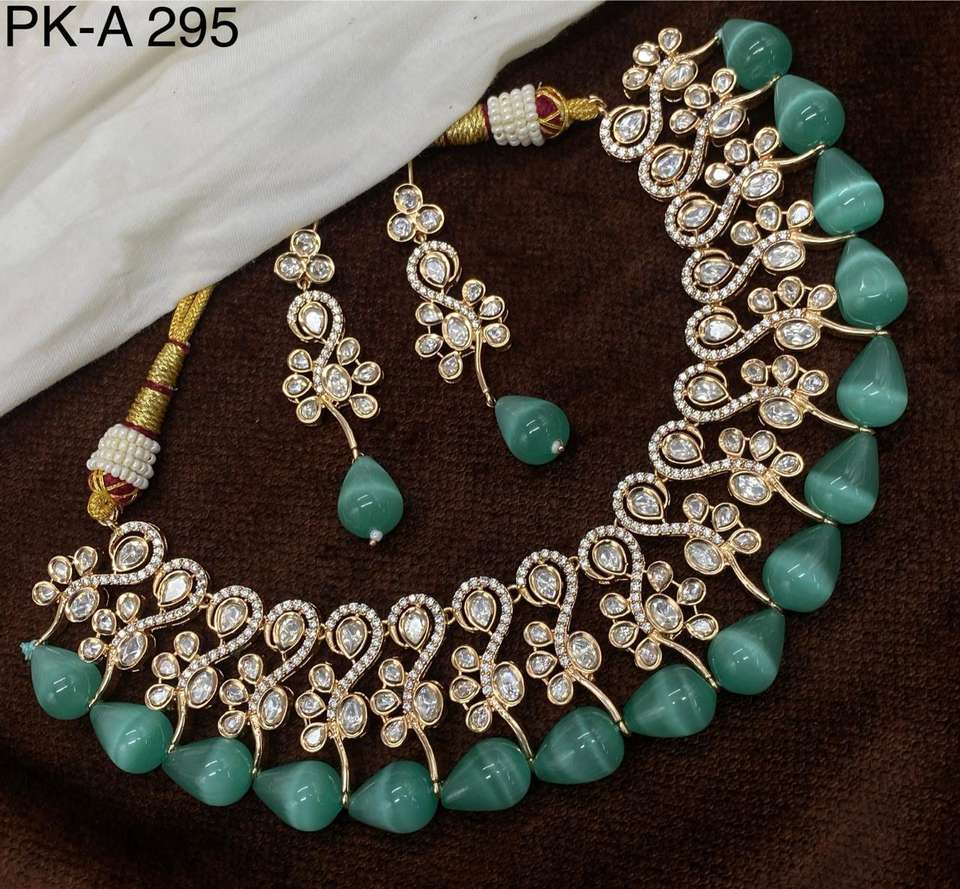 Traditional Indian Kundan Jewelry Set Elegant Brass Necklace & Earrings with American Diamonds for Brides & Women