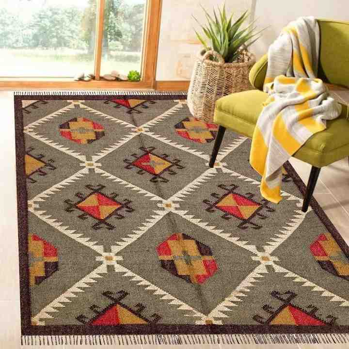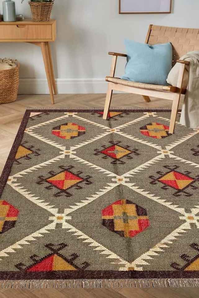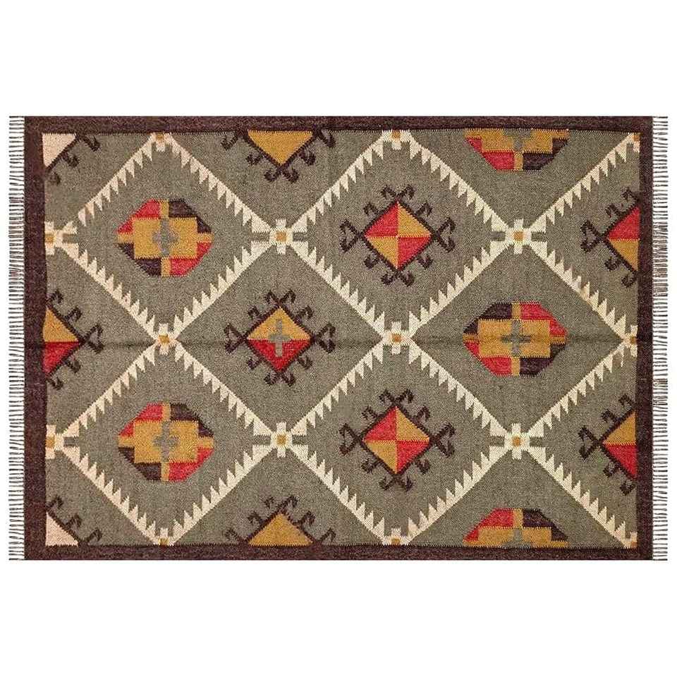 Tapis indien traditionnel tissé à la main en jute et laine, tapis kilim pour salon, chambre et bureau