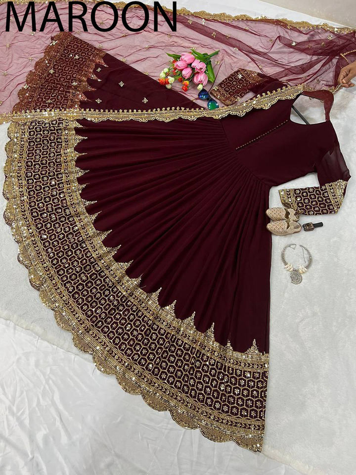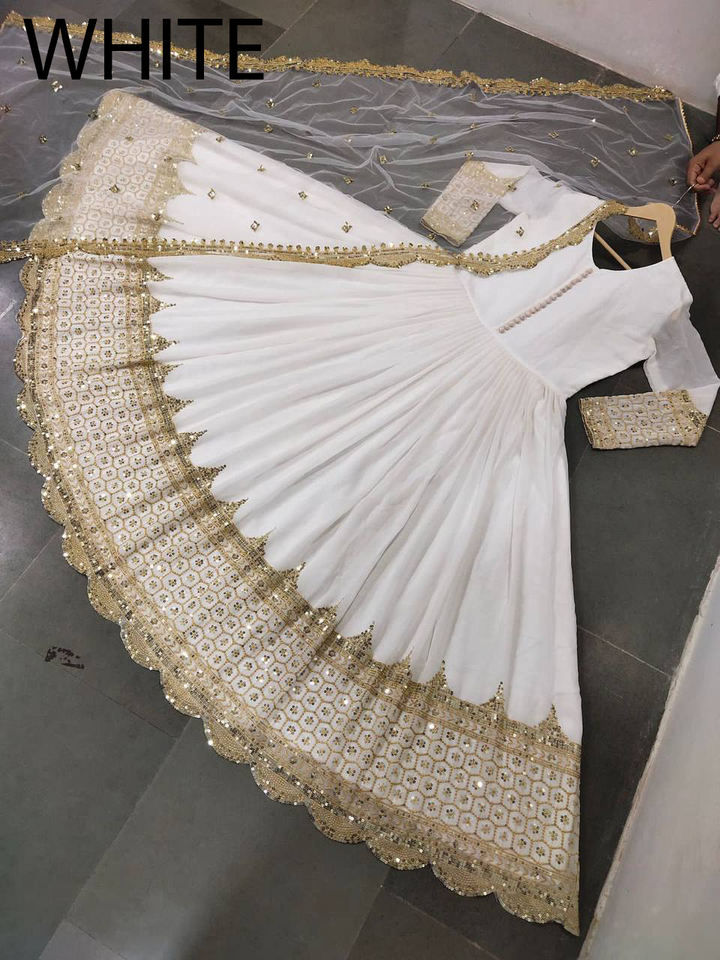 Robe longue Anarkali de style indien traditionnel en faux georgette brodée, avec dupatta de créateur, pour femme, idéale pour les fêtes d'hiver, best-seller, prête à porter