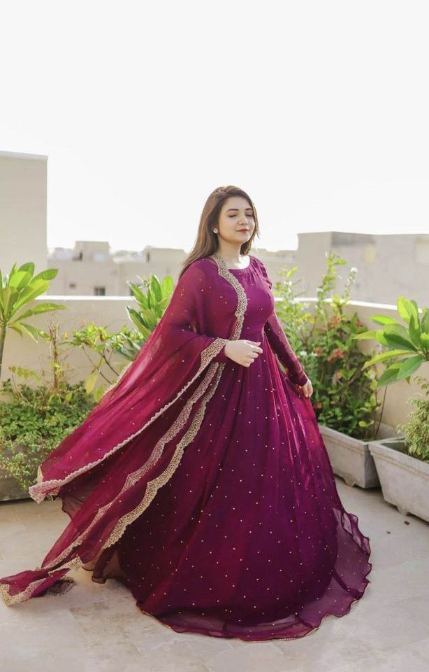 Robe longue Anarkali de style indien traditionnel en georgette avec travail de diamants, dupatta de créateur, manches longues, salwar kameez, costume de fête pour femmes