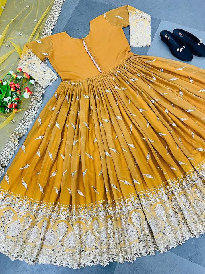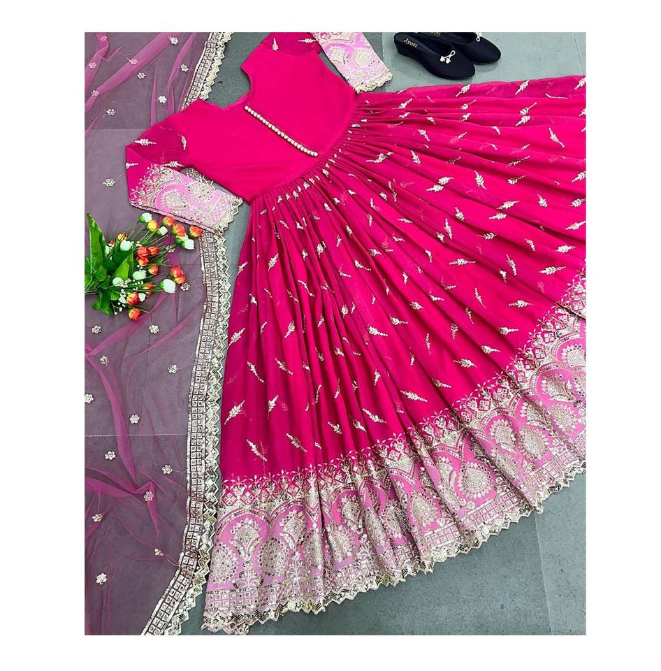 Style indien traditionnel Anarkali longue robe Georgette broderie concepteur personnalisé Dupatta costume de mariage pour les femmes naturel