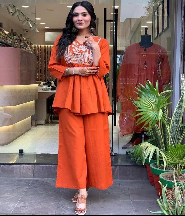 Ensemble de cordon de broderie traditionnel Jaipur avec Kurti avec bordure supérieure élégante et poche latérale pour tenues ethniques et quotidiennes