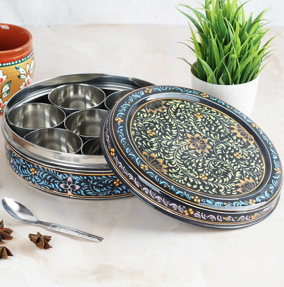 Récipient de stockage de cuisine traditionnelle boîtes à épices en laiton artisanal en métal pour les épices et les herbes à des fins d'organisation de l'Inde