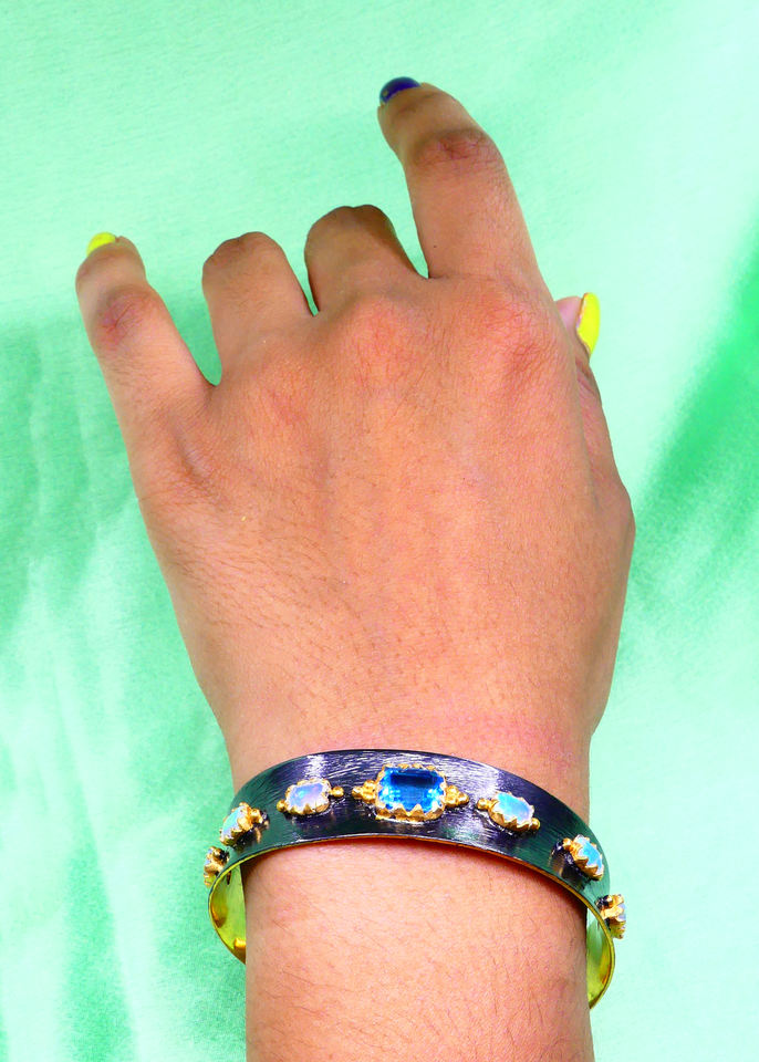 Style de texture de ligne traditionnelle 925 argent Sterling bleu topaze opale pierres précieuses femmes classiques portent des bracelets de manchette
