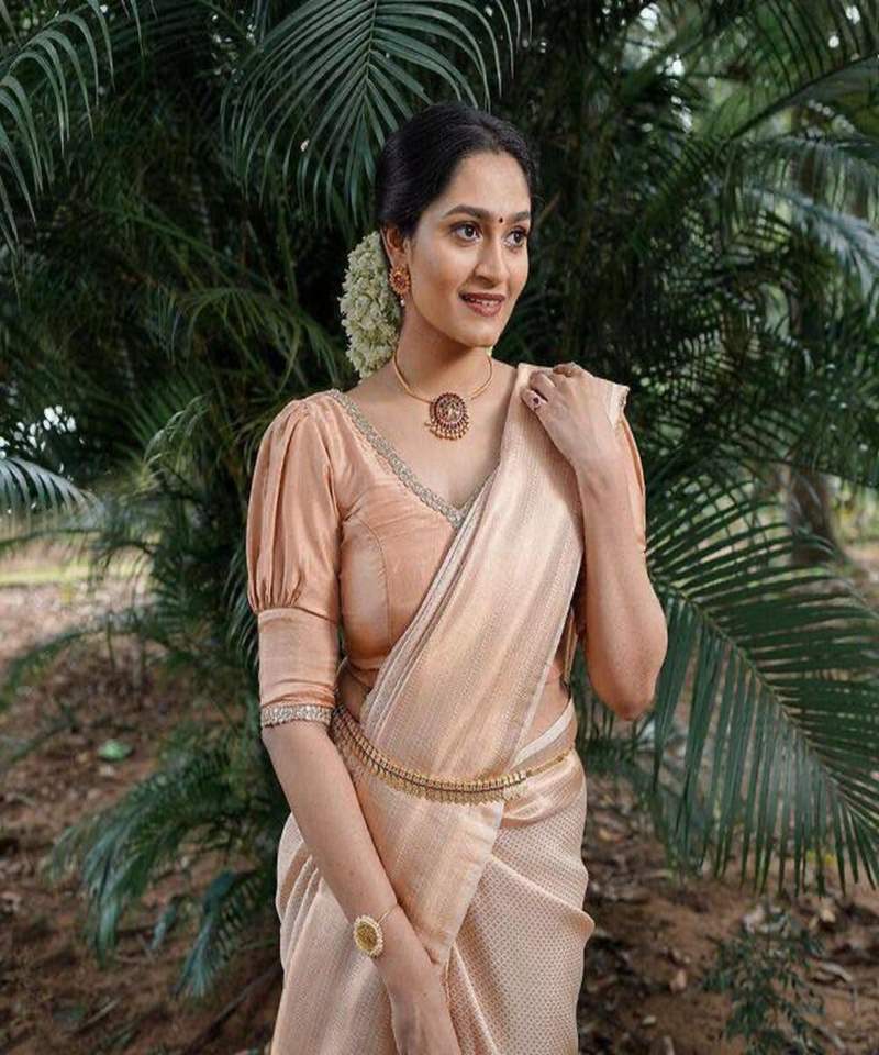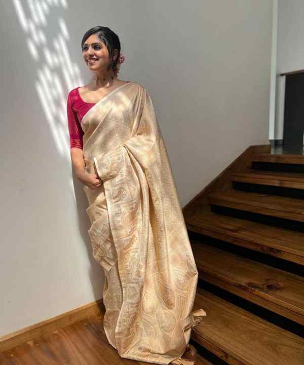 Saree au look traditionnel parfait pour toute occasion tendance Office Wear Banarasi Saree avec Dori Work pour une élégance professionnelle.