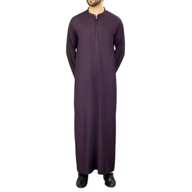Qamis traditionnel arabe pour homme en coton et lin uni, style Abaya, manches longues, poches, décontracté, ethnique, style Jubba