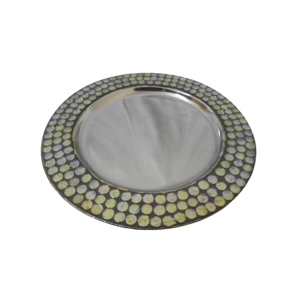 Assiette de service traditionnelle en métal artisanal, forme arrondie, pour la présentation des plats sur table d'hôtel, assiettes circulaires pour servir des desserts