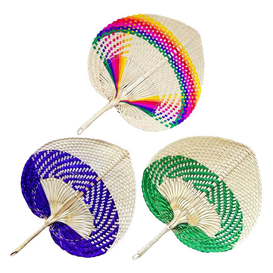 Éventail traditionnel miniature en bambou avec feuille de palmier et raphia, éventail vietnamien sculpté pour mariage d'été