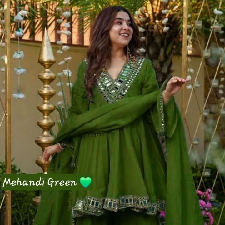 Traditional Mirror Work Kurti Set for Women with Elegant Dupatta