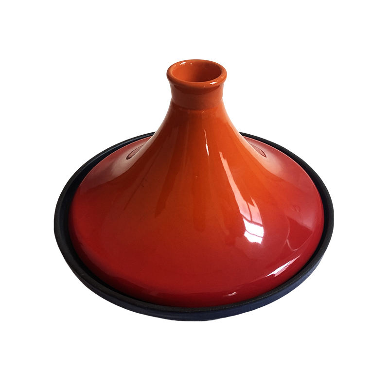 Tajine de marmite en fonte émaillée avec couvercle fermé en forme de cône en céramique