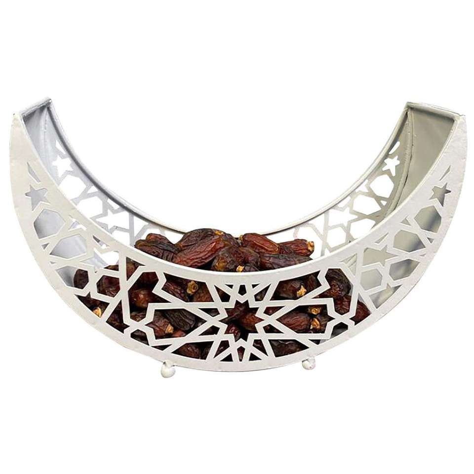 Plateau d'assiettes à dîner en fer forgé, pour Ramadan Eid Mubarak, décoration de la maison musulmane traditionnelle, de service en forme de lune, couleur or