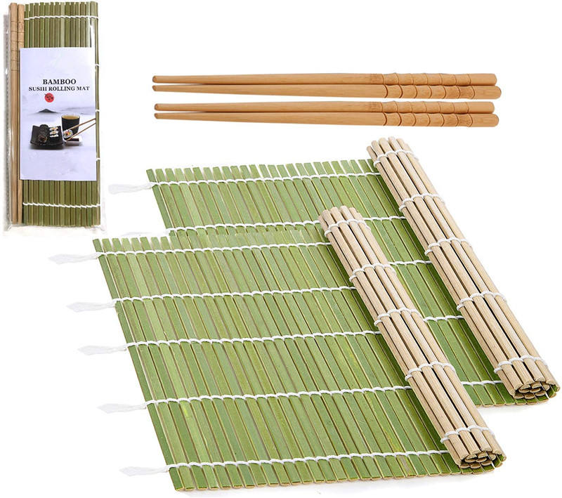 Set traditionnel de fabrication de sushis, tapis à rouler en bambou naturel, kit de fabrication de sushis, baguettes faites maison