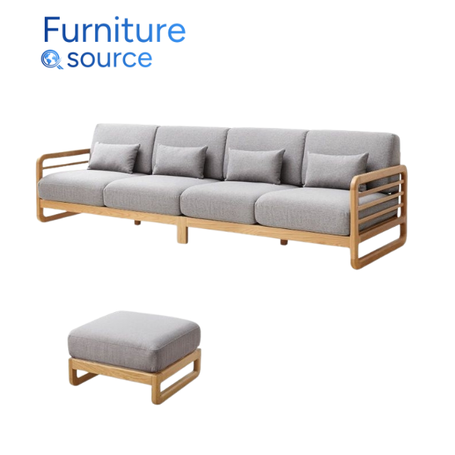 Canapé de salon traditionnel en bois de chêne avec rembourrage doux et coussins, idéal pour la maison, l'hôtel ou le salon de bureau
