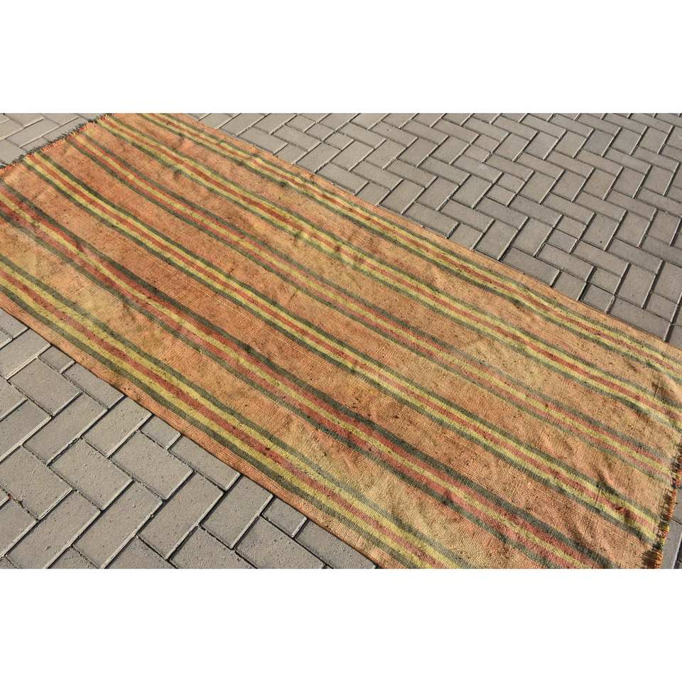Tapis traditionnel en laine Patchwork vert Orange 3.7x8 pieds couloir rectangulaire turc grande surface pour chambre d'adolescent salon Latex
