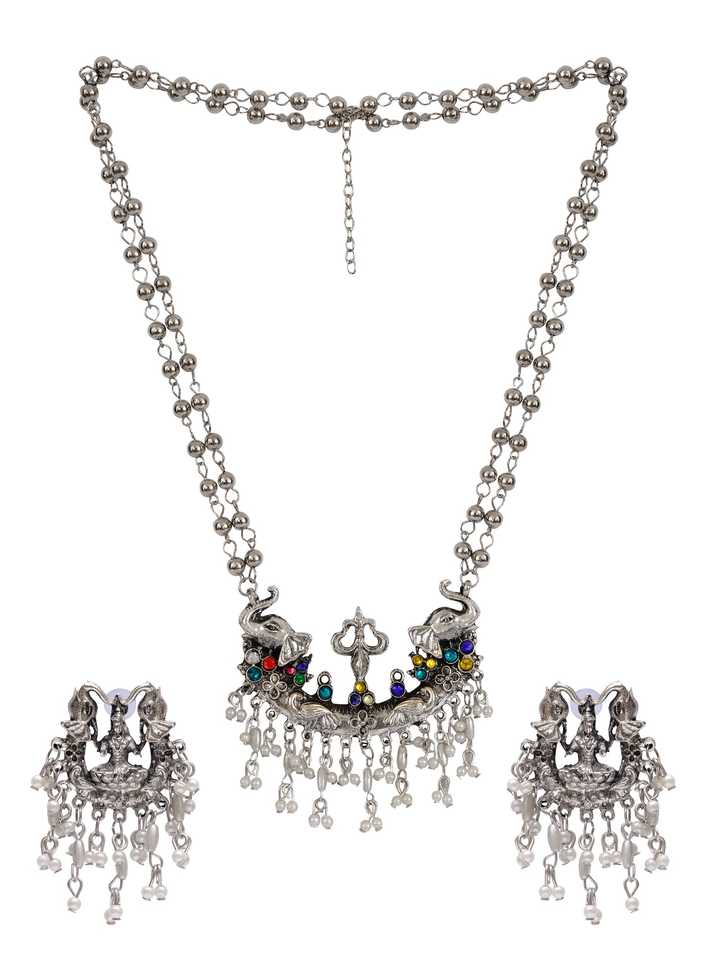 Product Name:Oxidised Silver Goddess Temple Set