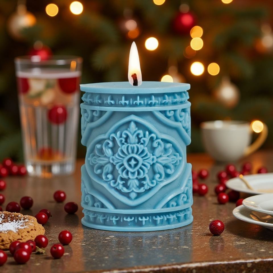 Moule à bougie en silicone réutilisable écologique de forme cylindrique à motifs traditionnels pour la décoration de la maison Bougies parfumées