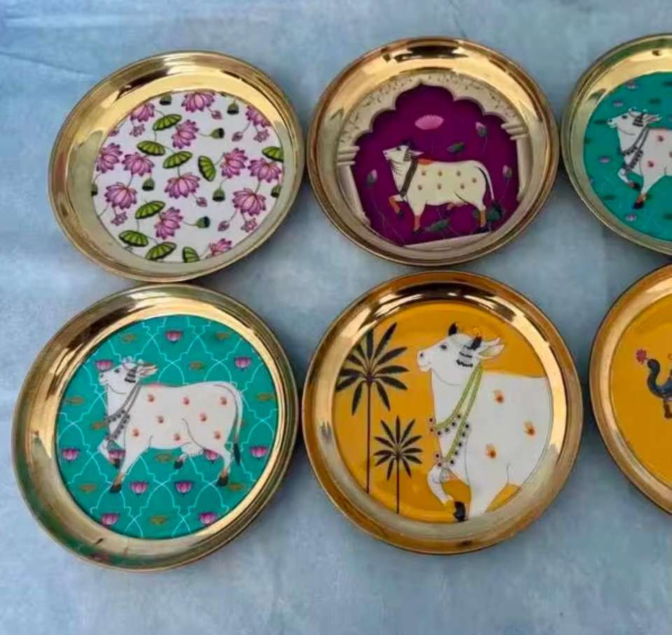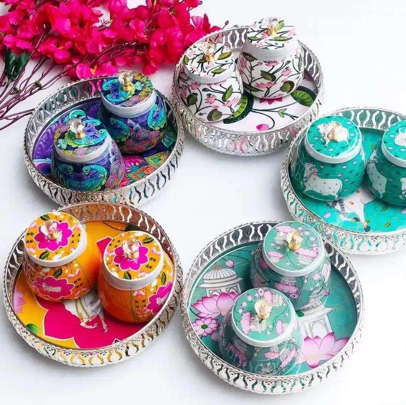 Traditional Pichwai Animal Handmade Horn Trays Jars Bulk German Silver Print Real Touch Home Decor Indian Wedding Favors HF