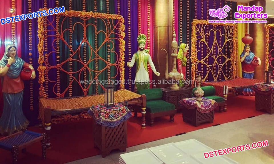 Traditional Punjabi Theme Mehndi Stage And Statues