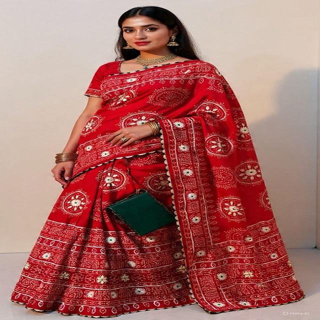 Traditional Women's Pure Vhichtra Silk Bandhej Saree Khadi Bandej Kacchi Gotapatti Work Rich Pallu Attractive Border Made India