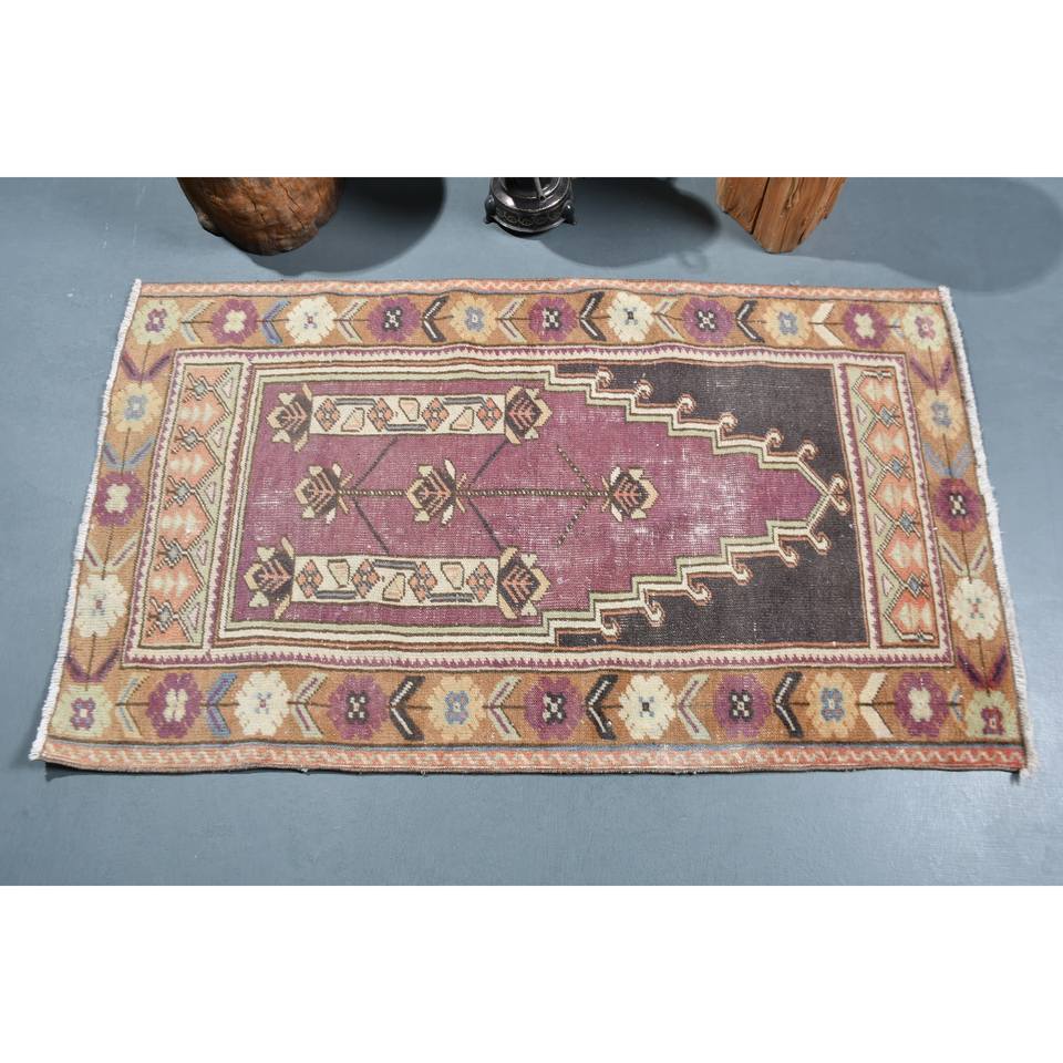 Traditionnel violet brun 2.7 X 4.5ft grande surface Vintage tapis turc laine peau de vache Latex rectangulaire Patchwork peluche pour couloir