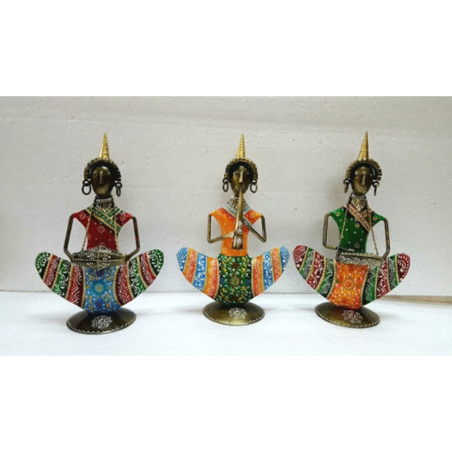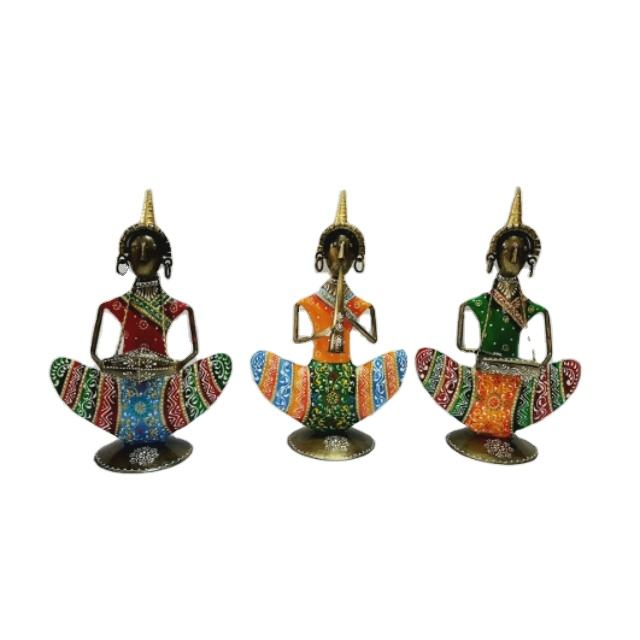 Ensemble de figurines métalliques mobiles Art Déco représentant des musiciens folkloriques traditionnels du Rajasthan (Lot de 3) pour Diwali, Pâques, 3-6 ans, SwamiG TradeX