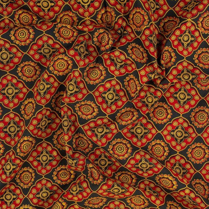Traditionnel rouge Ajrakh main bloc imprimé colorant naturel utilisé coton tissu pour décor à la maison rideau couvre-lit tissu