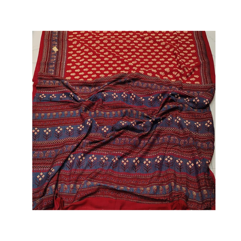 Nom du produit:Coton mousseline rouge AZrakhs Saree