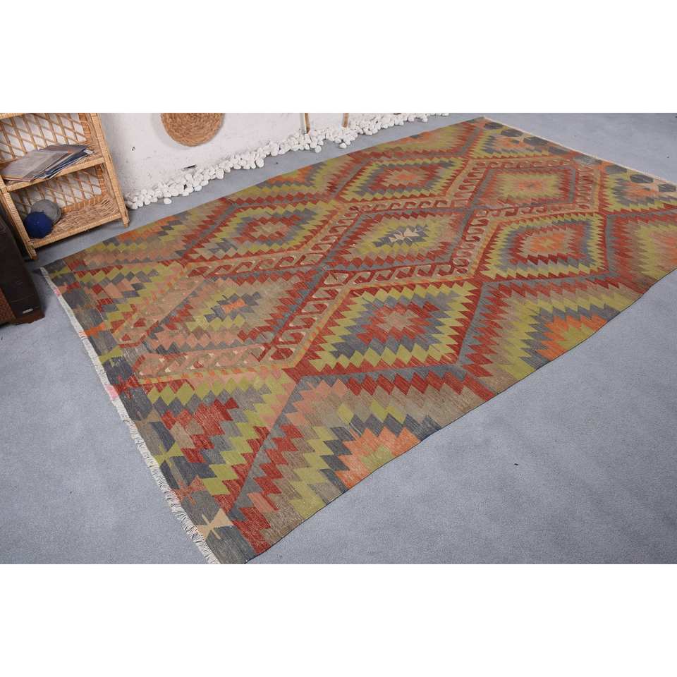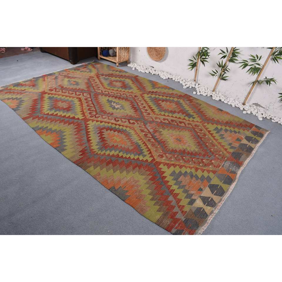 Tapis traditionnel en laine vert rouge 6x10ft Vintage turc grande surface Patchwork motif pour salon décor couloir support en Latex