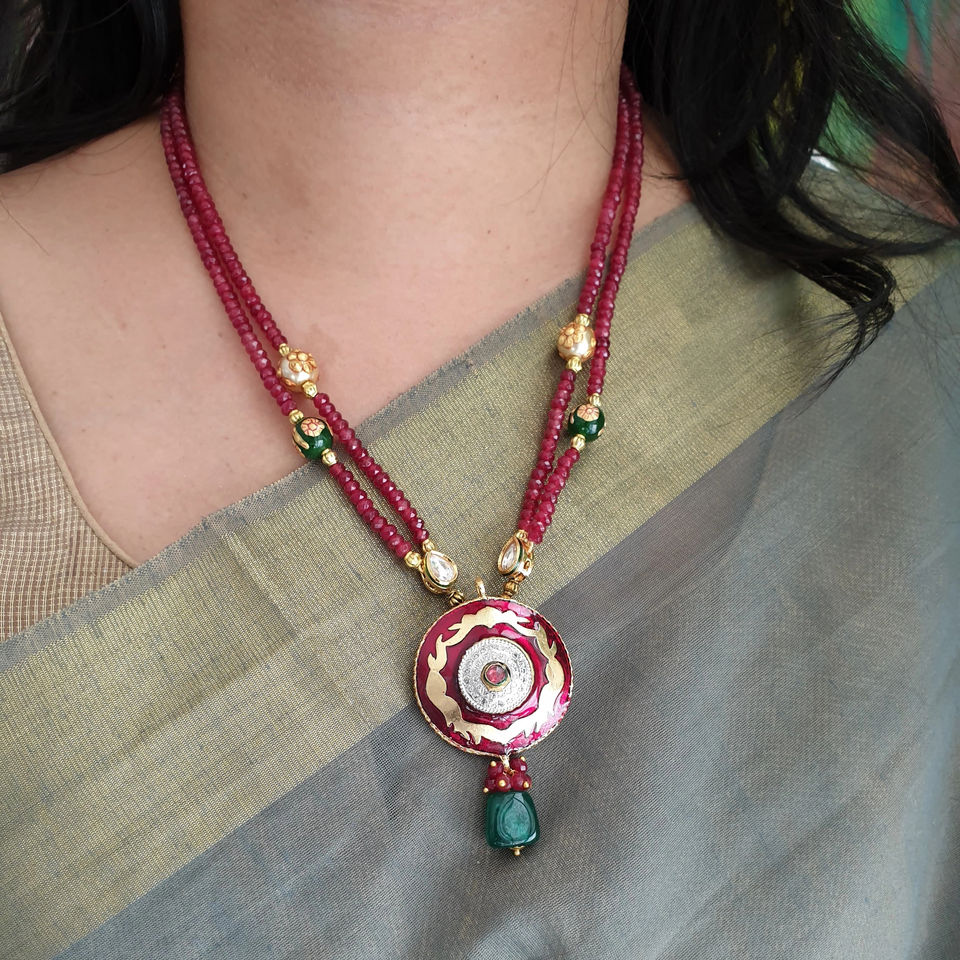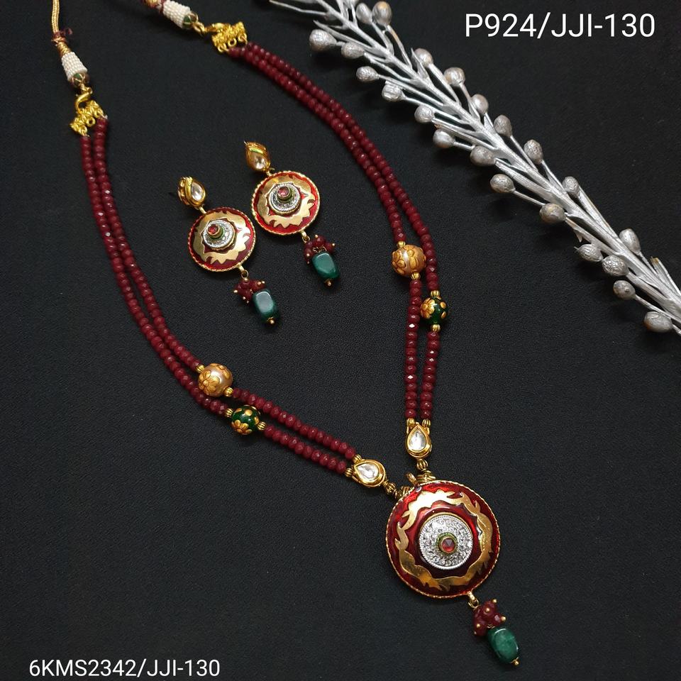 Perle de pierre rouge traditionnelle Meenakari pendentif ensemble avec boucles d'oreilles bijoux de mode ethnique Design traditionnel indien pour les femmes