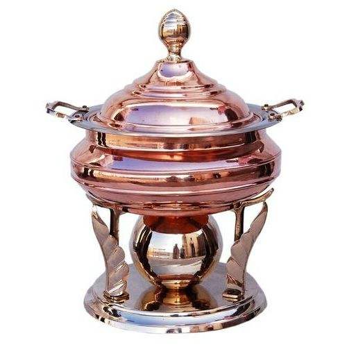 Plat à friture rond traditionnel en cuivre avec base sculptée idéal pour le banquet servant un buffet de mariage et d'hôtel