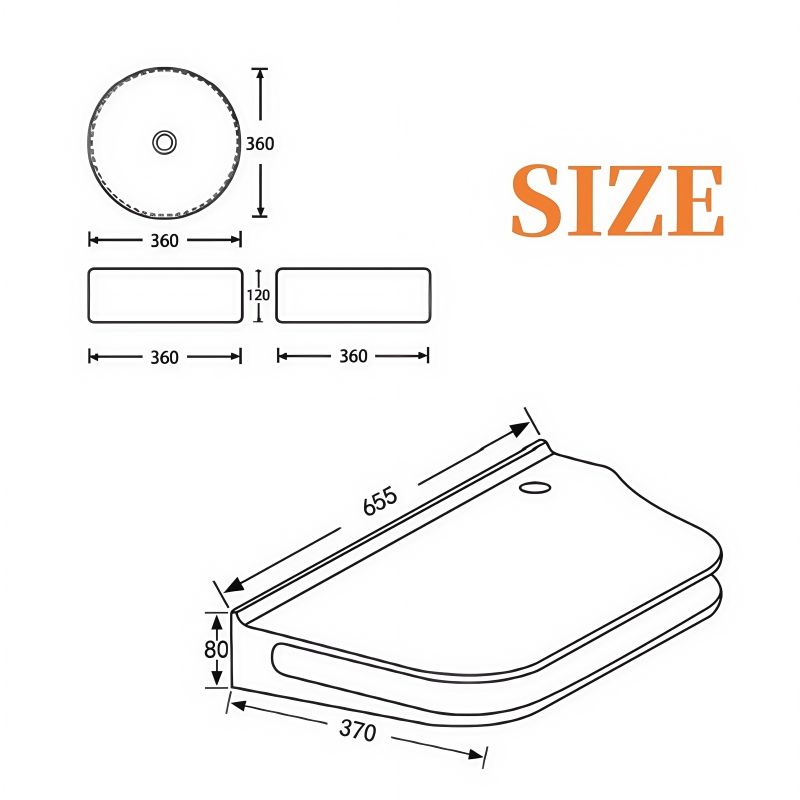 Plateau en céramique: 655*370*80mm Bassin: 360*360*120mm