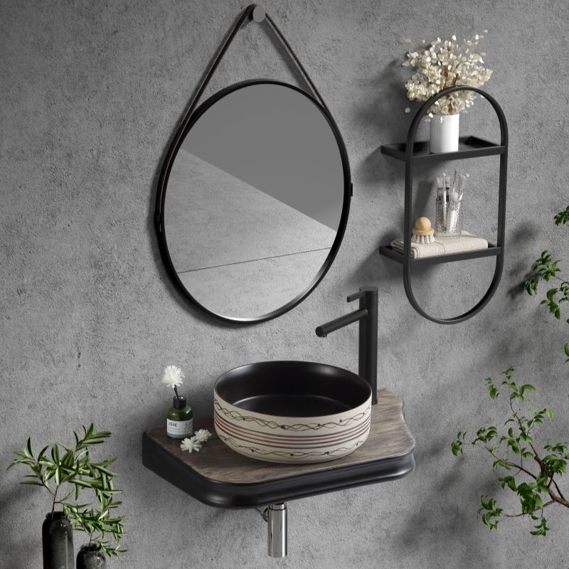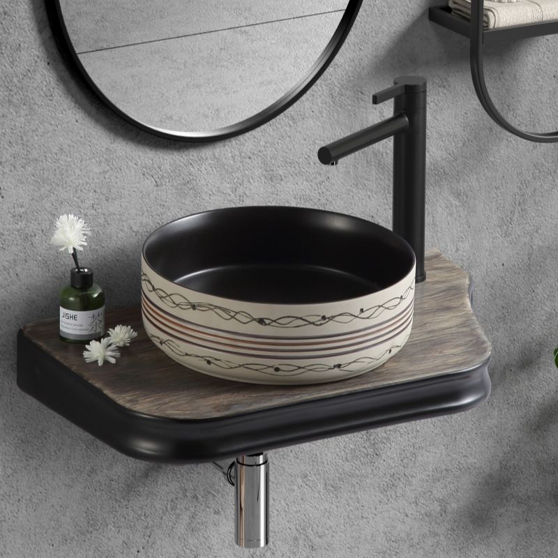 Évier de lavabo suspendu au mur en porcelaine ronde traditionnelle Évier de salle de bain d'art de comptoir en céramique bon marché