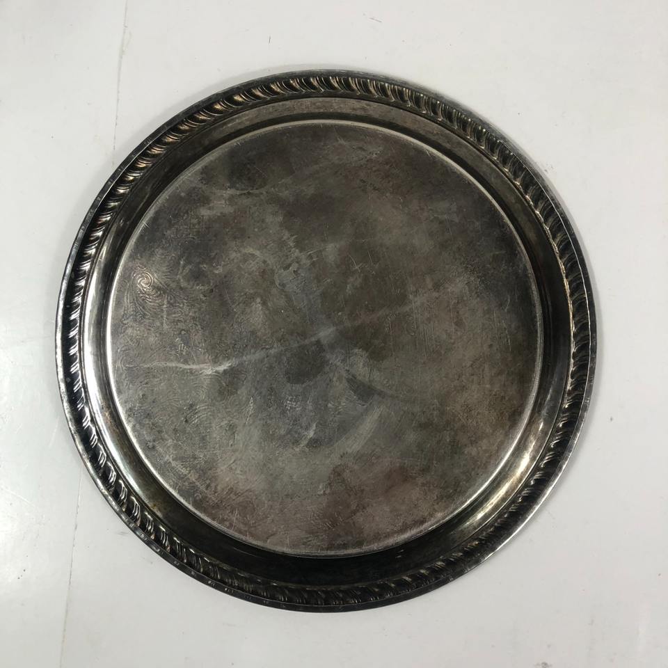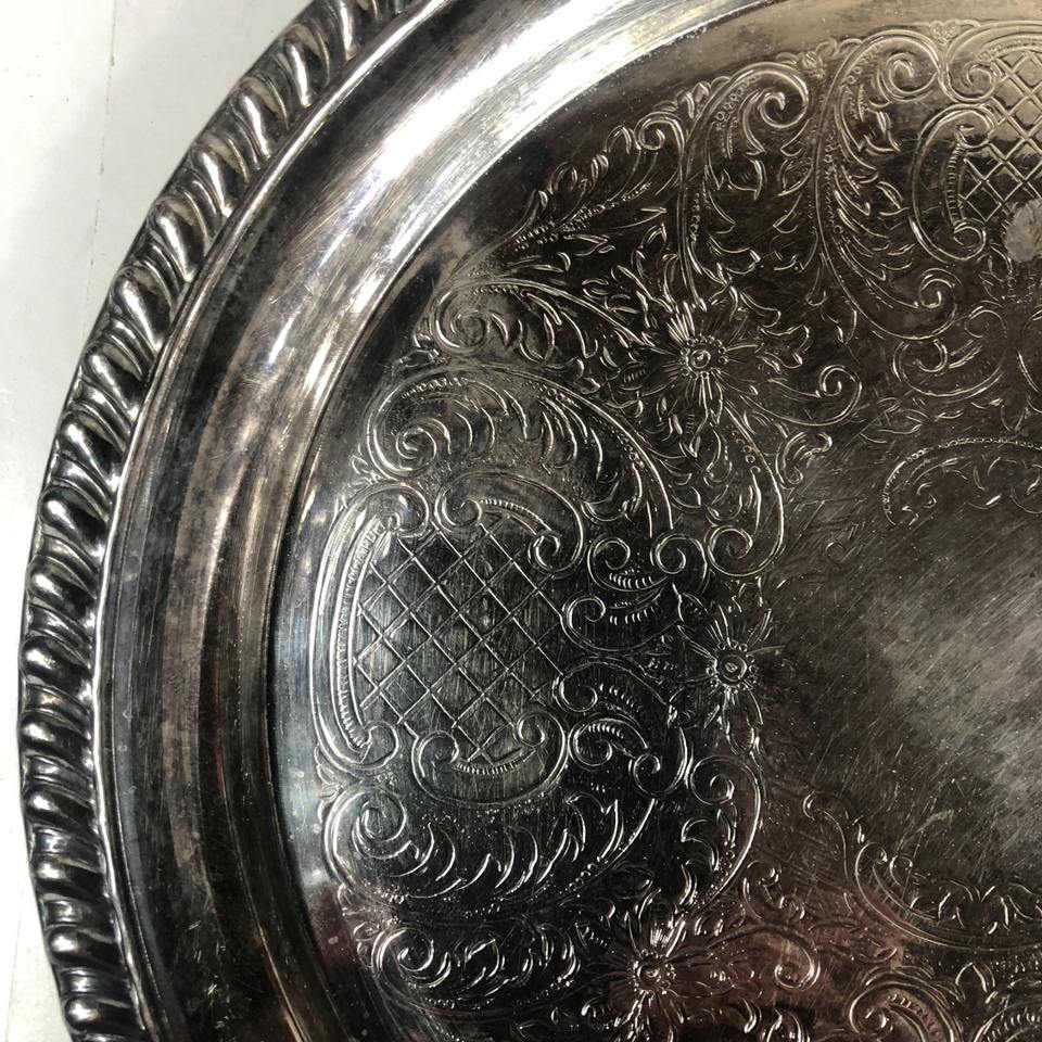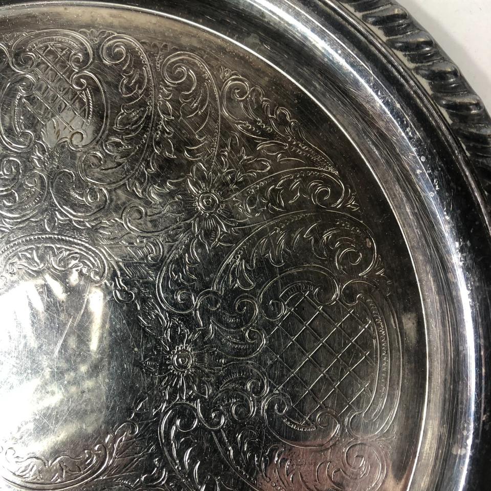 Plateau de service rond traditionnel en argent avec motif gravé, idéal pour les fêtes à domicile, les festivals, les mariages et les occasions spéciales