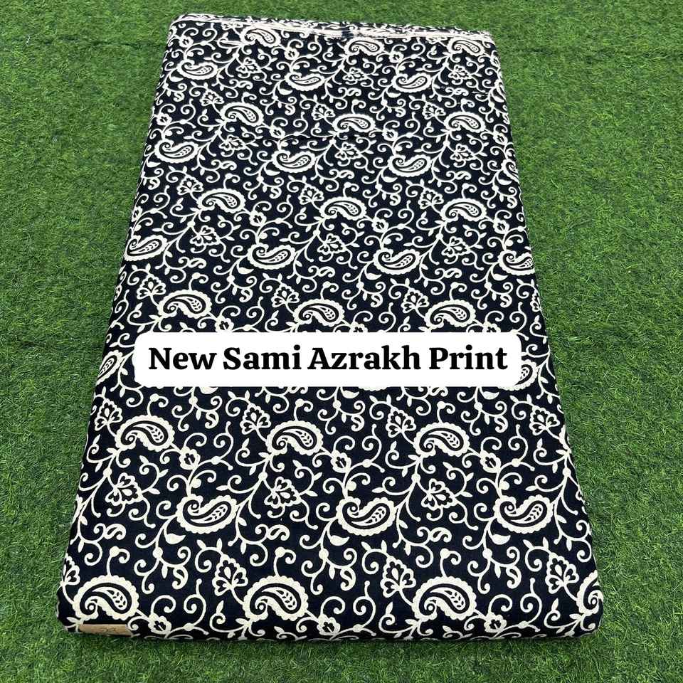 Tissu en coton imprimé traditionnel Sami Azrakh, tissu en coton doux pour la confection de robes Kurti, de costumes, de travaux d'artisanat et d'usage domestique