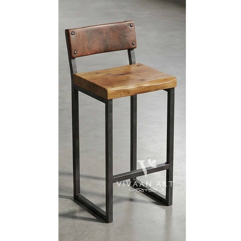Tabouret de bar traditionnel en bois massif fait main avec revêtement en tissu et design élégant pour appartement, hôtel, chambre et salle à manger
