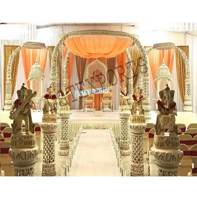 Mariage chic traditionnel du sud de l'Inde Mandap mariage Royal Maharaja élégant éléphant piliers de défense Unique éléphant Mandap fibre
