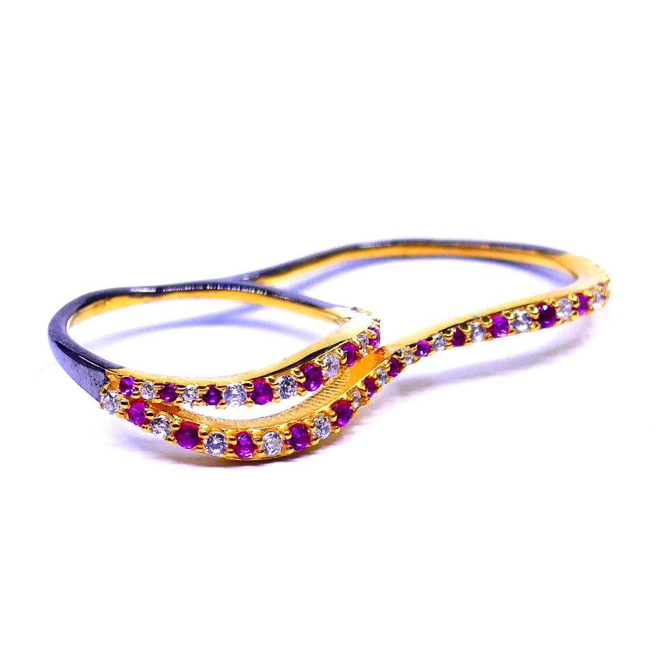Bague en argent sterling traditionnel 925 rhodolite grenat topaze blanche pierres précieuses réglable à double doigt