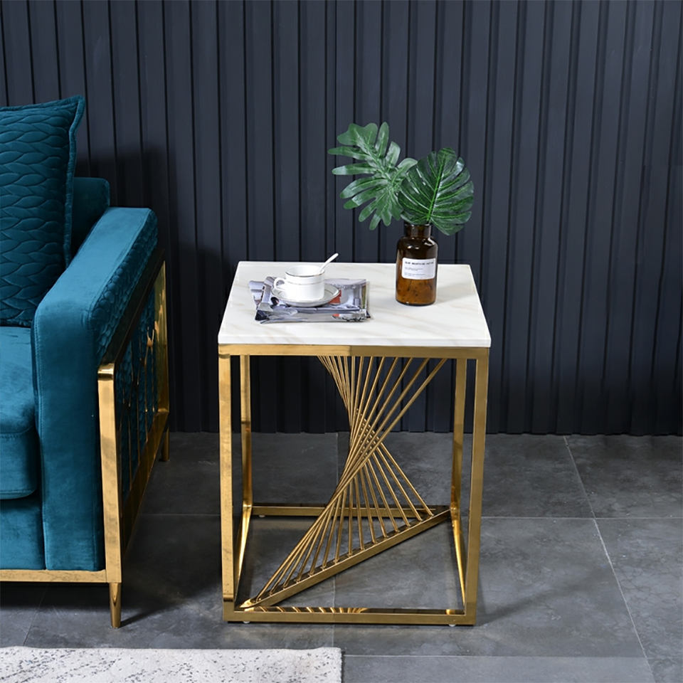 Table d'appoint de style traditionnel à base dorée avec dessus en marbre pour la décoration intérieure et les meubles de salon