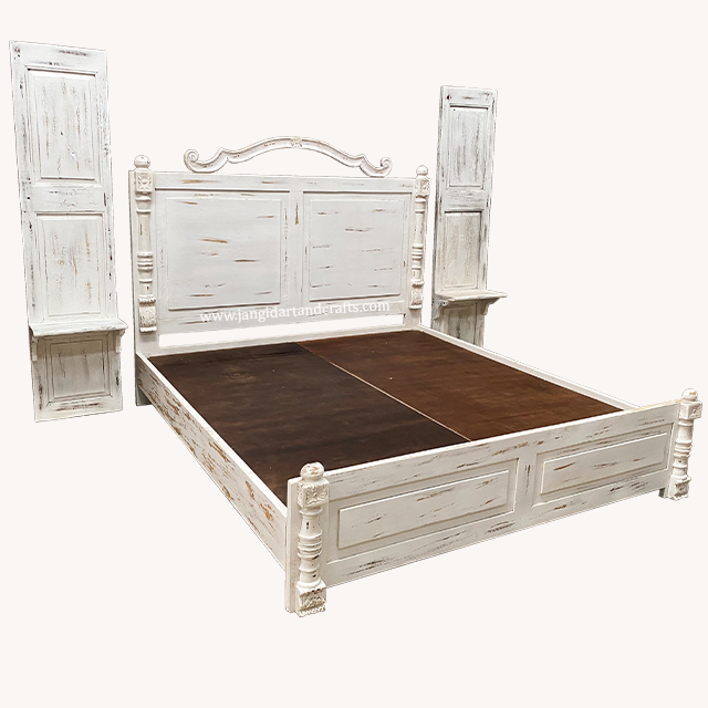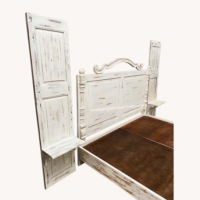 Meubles de chambre à coucher en bois de manguier massif de style traditionnel, lit sculpté à la main avec tête de lit robuste, cadre de lit double, lit king-size