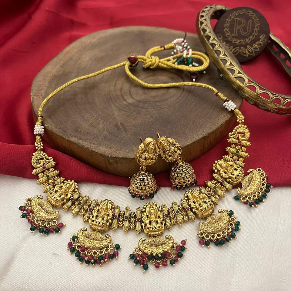 Ensemble de collier de temple traditionnel avec collier plaqué or ensemble avec boucles d'oreilles pour mariage porter un festival pour les femmes