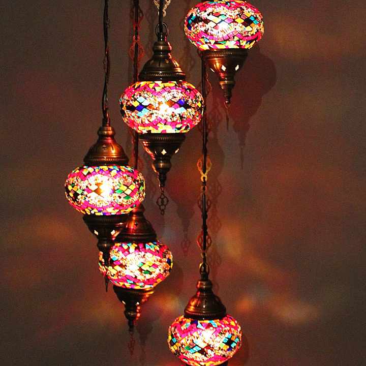 Ypersonnalisé — lustre en verre en mosaïque turque, 5 pièces, Chandelier traditionnel turc, sans 2 nuances