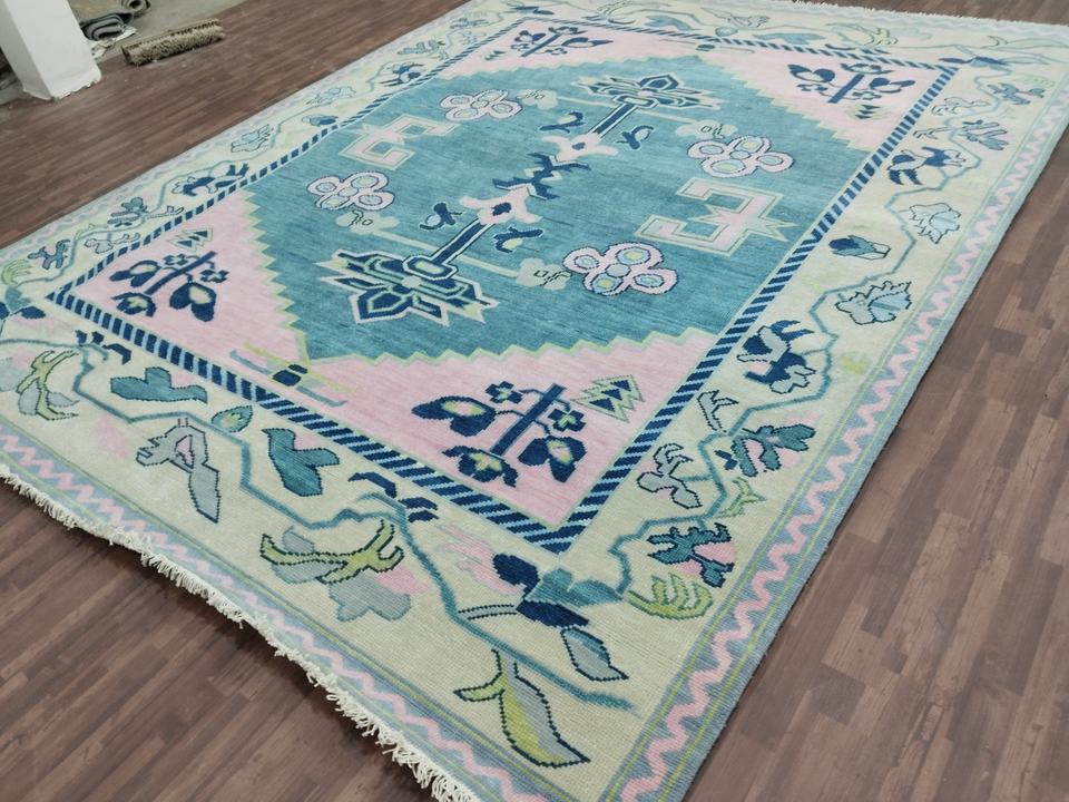 Caractéristique:Tapis Oushak en laine noué à la main
