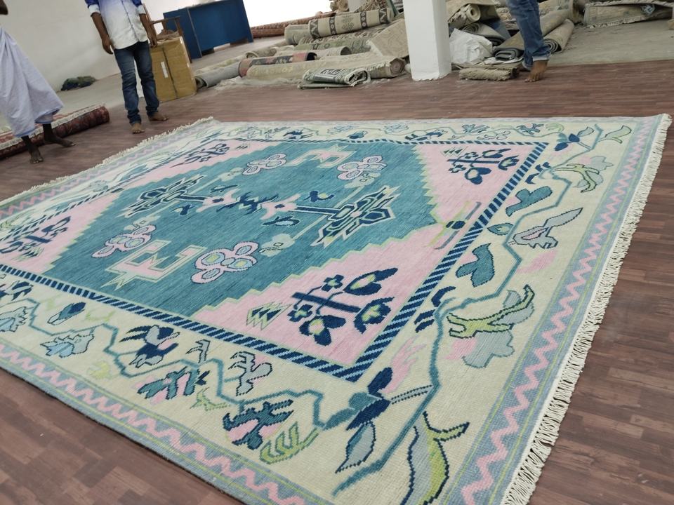 Conception:Tapis Oushak Design Couleur Rose Bleu