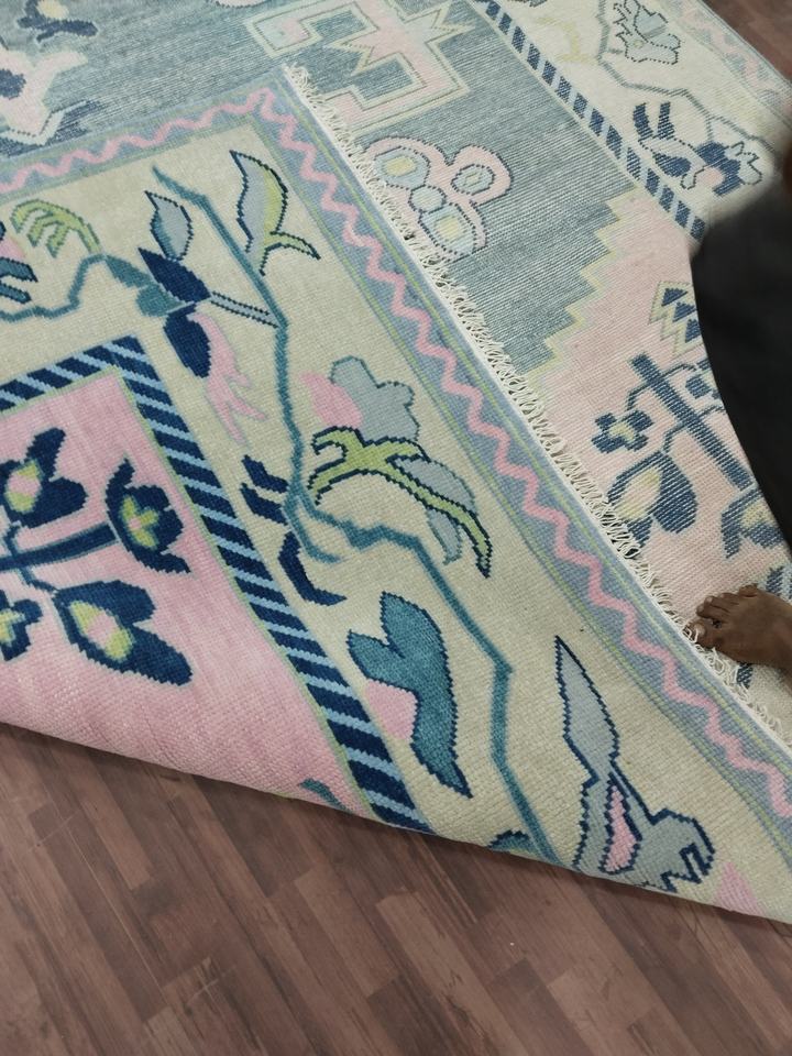 Tapis Oushak Design Couleur Rose Bleu
