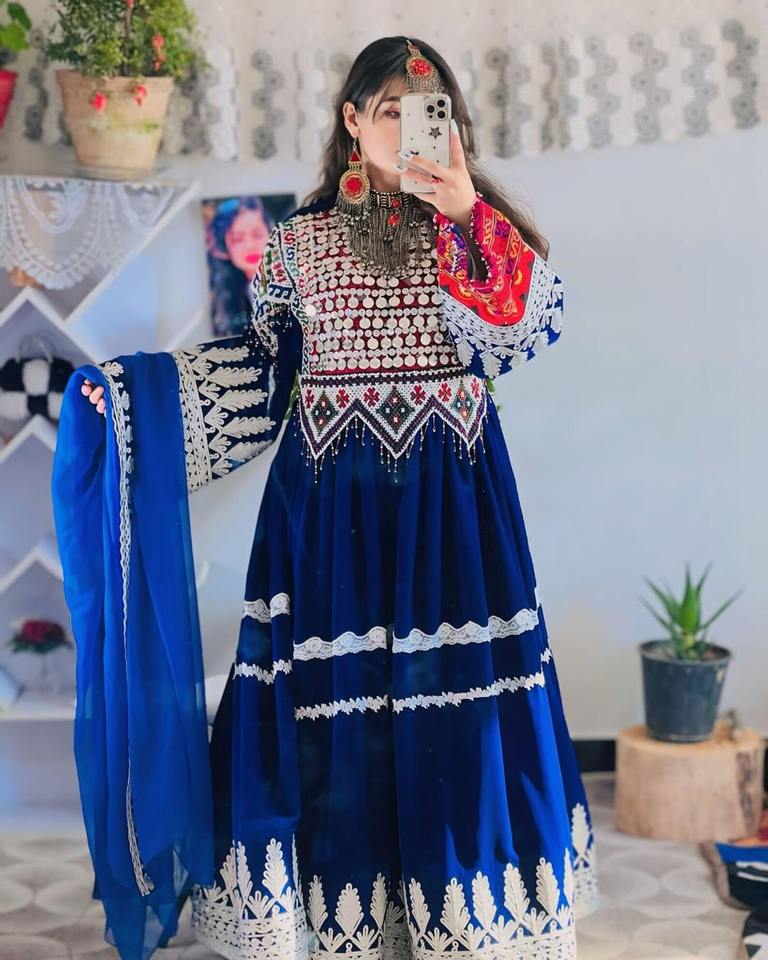 Traditional Vintage Bohemian Floral Handmade Pashtun Ethnic Wedding Dress for Women Long Maxi with Authentic Design
