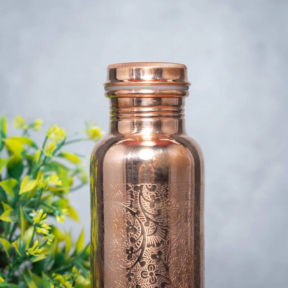 Bouteille d'eau en cuivre artisanale de style vintage traditionnel pour l'hydratation quotidienne et l'amélioration de la santé