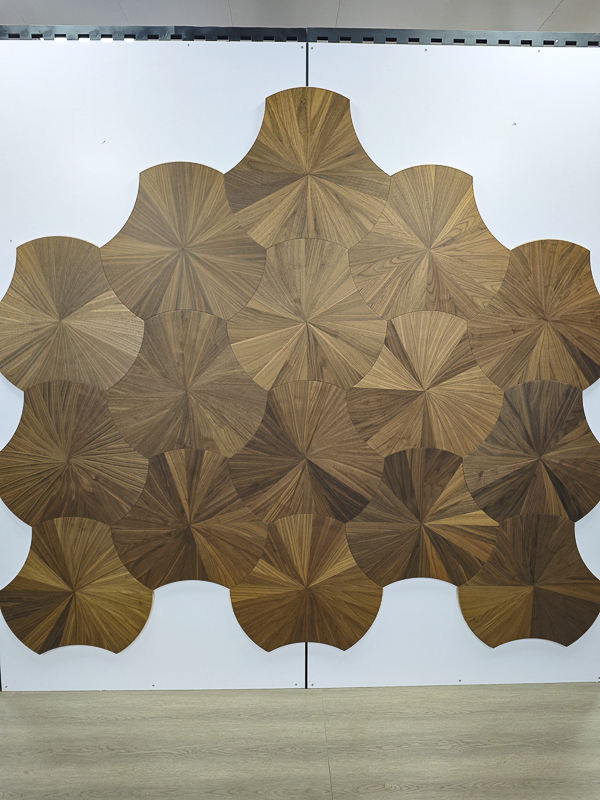 Parquet en mosaïque artistique traditionnel en noyer, motif feuille de lotus, pour espaces sophistiqués